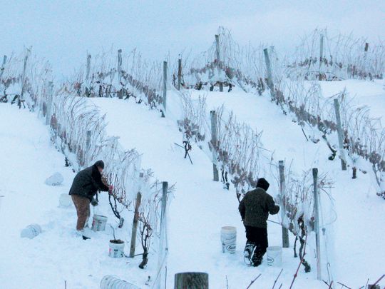 Los Vinos de Hielo se recogen entre Diciembre y Enero, teniendo que llegar algunos años a principios de Febrero.