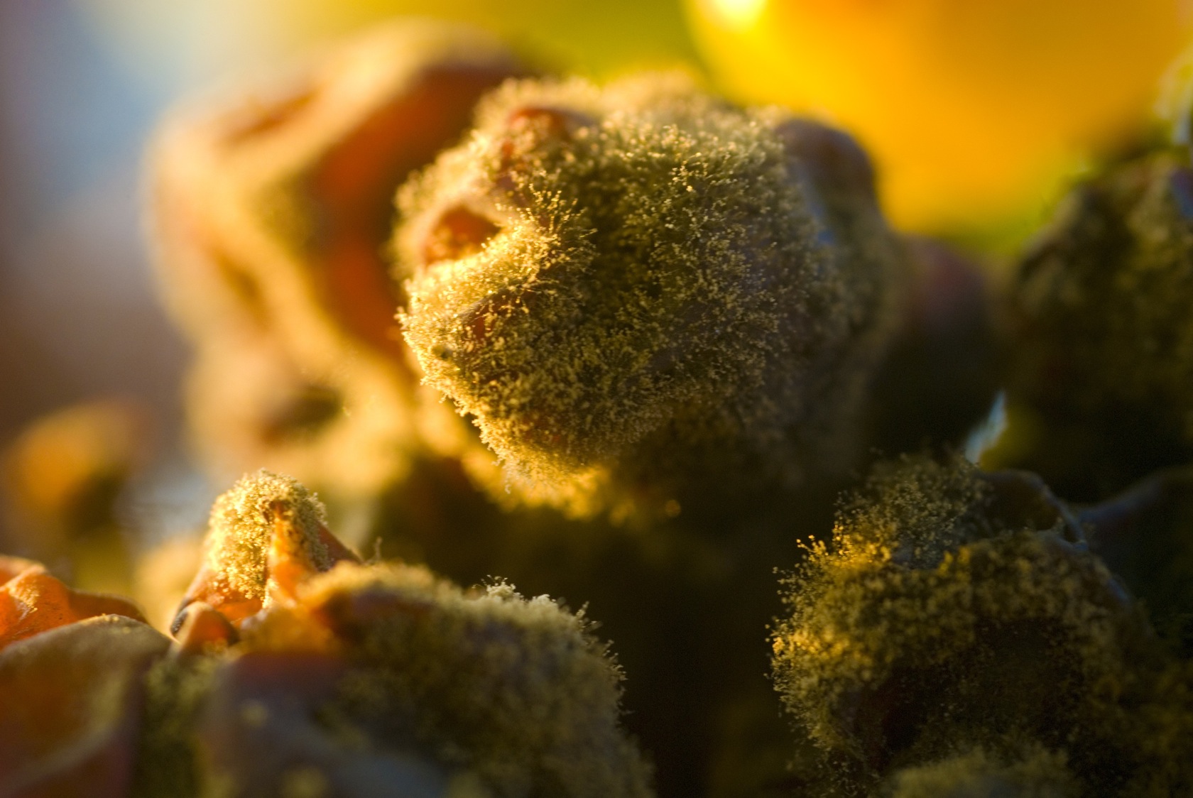 Estas condiciones son las ideales para la proliferación del hongo Botrytis Cinerea, conocido también como podredumbre noble, que recubre los granos con una fina película. El resultado de la acción de este hongo sobre la uva es una desecación progresiva del grano, con la consiguiente concentración de azúcar y ácidos, a la vez que lo protege de microorganismos potencialmente dañinos.